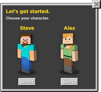 Use blocks of code to take Steve or Alex on an adventure through this Minecraft world.